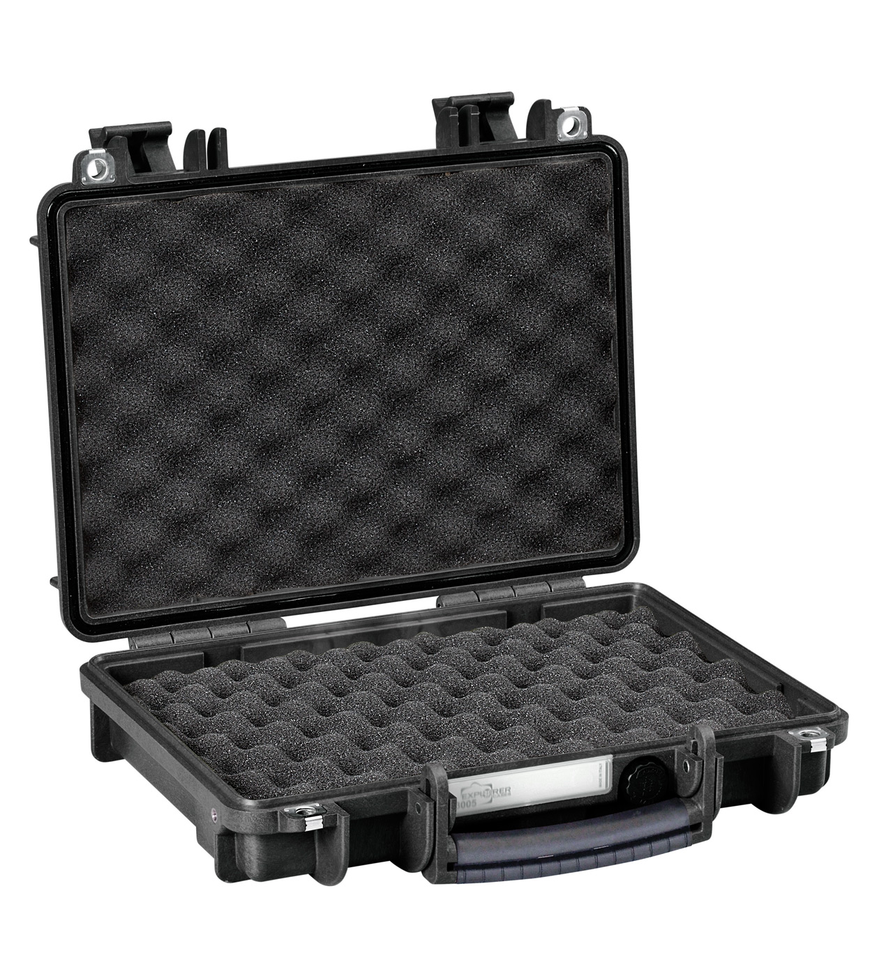 EXPLORER slim, black waterproof case with double egg foam layers, ideal to store, protect and carry small slim parts and accessories.