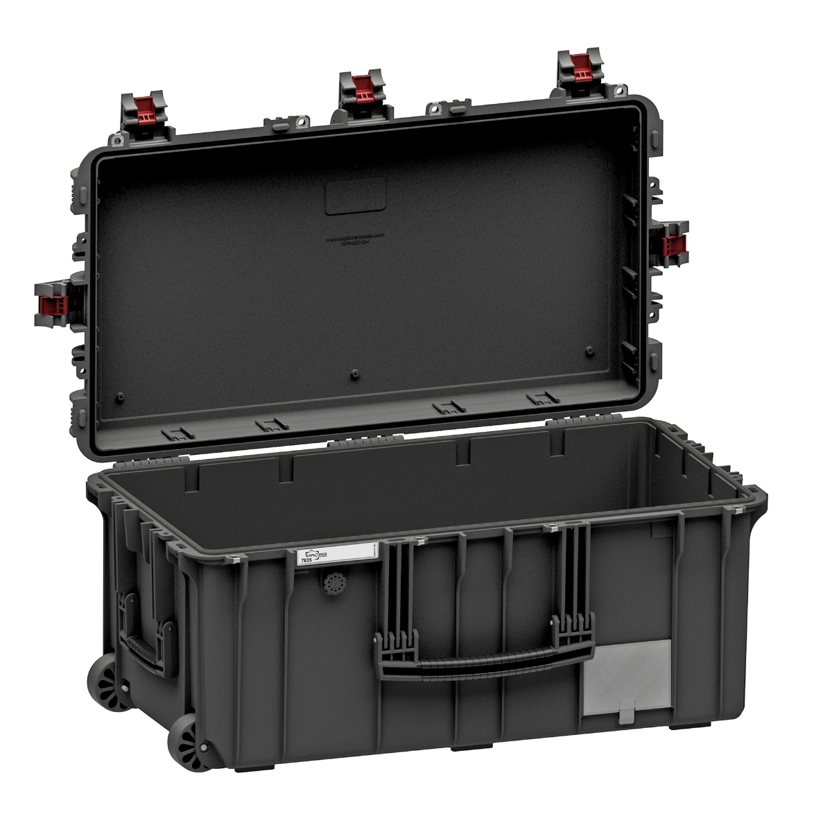 EXPLORER HL waterproof, black, rolling case, emtpy, with extractable trolley handle, 5 latches, padlock holes, airline-proof, ideal to carry, protect and ship on location photo & lights equipment.
