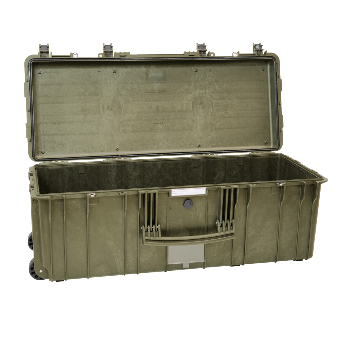 EXPLORER Waterproof Rolling Case, olive drab color, empty.